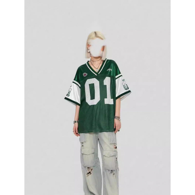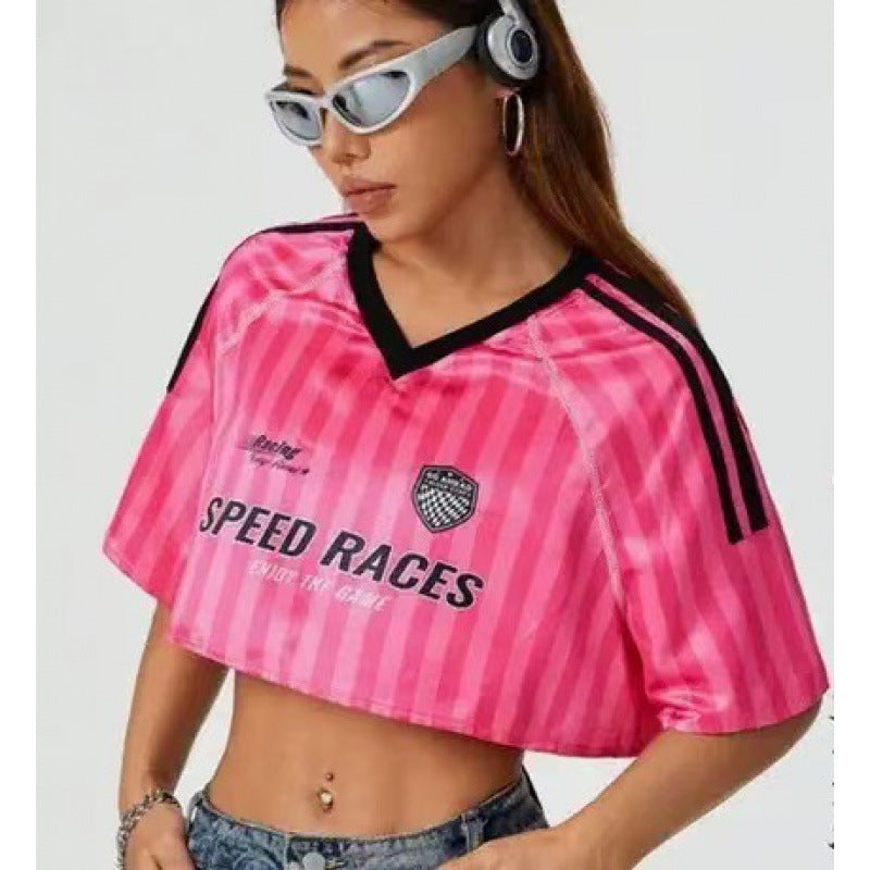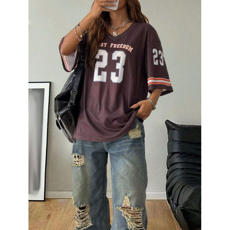 Women's Long Letter Pattern V-Neck T-Shirt